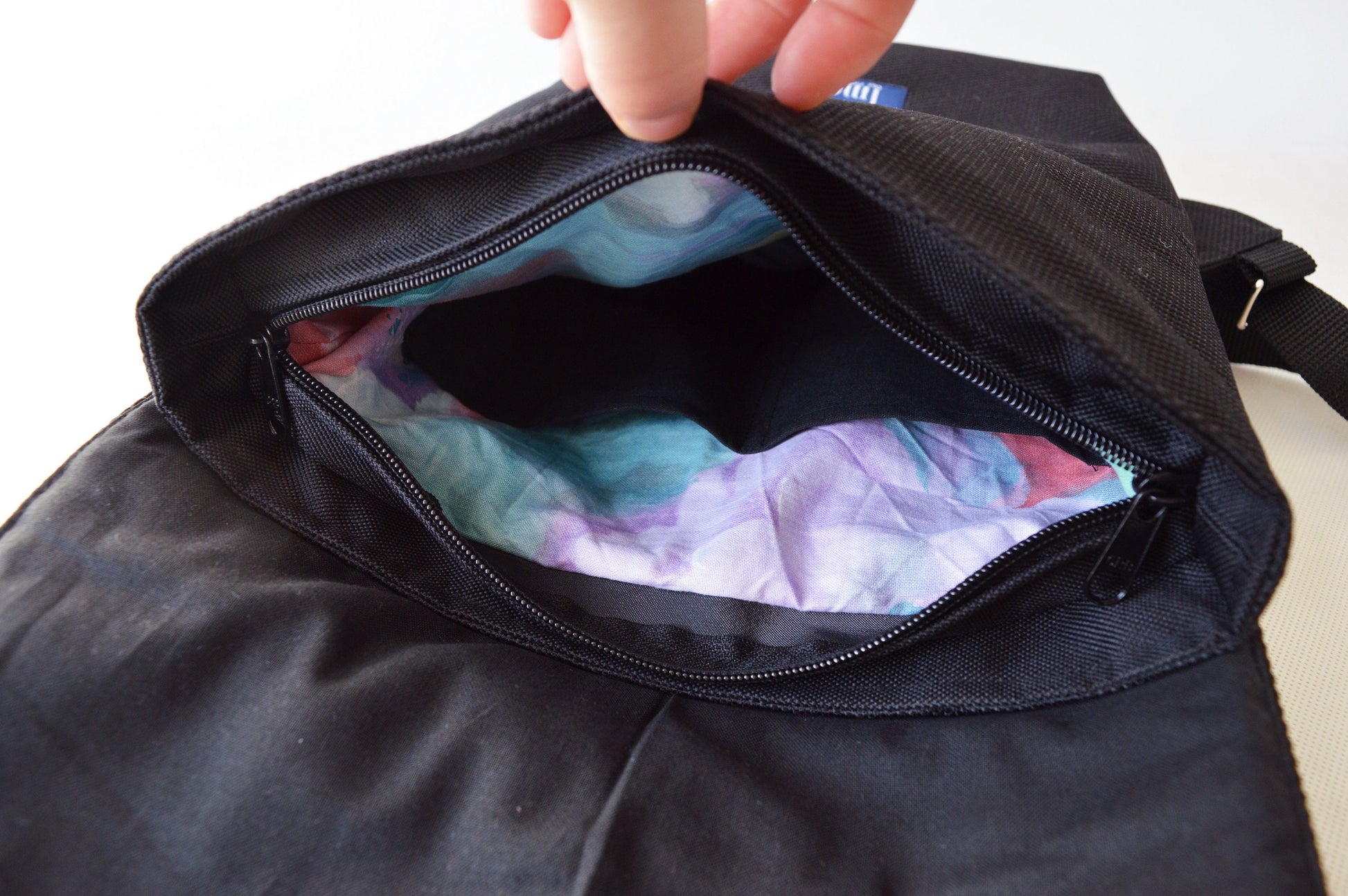 Backpack black hipster backpack rucksack cycling bag everyday small mini backpack Zurichtoren geometric simple minimalist backpack. It's made from black carbon pattern waterproof cordura. Pockets on the lining. The bag has two way zipper and magnetic closure. It's a perfect everyday small bag.