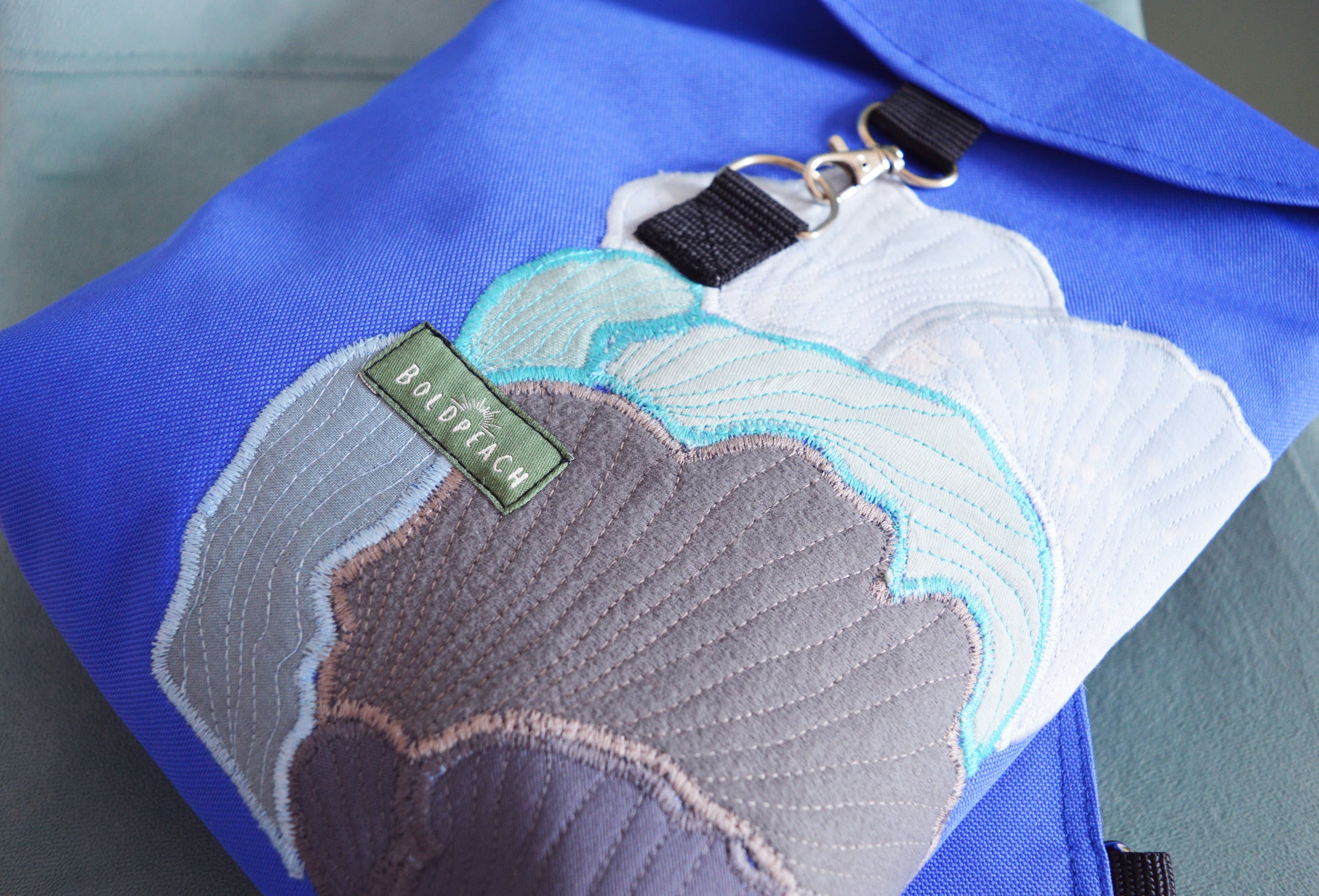 Backpack blue hipster backpack rucksack cycling bag everyday small mini backpack magic mushroom applique abstract OOAK purplish vegan backpack. It's made from purplish blue waterproof cordura and different fabrics. Pockets on the recycled lining. The bag has two way zipper and snap hook closure. It's a perfect everyday small bag.