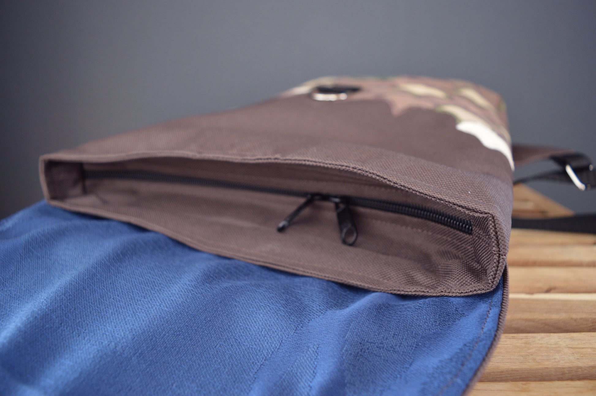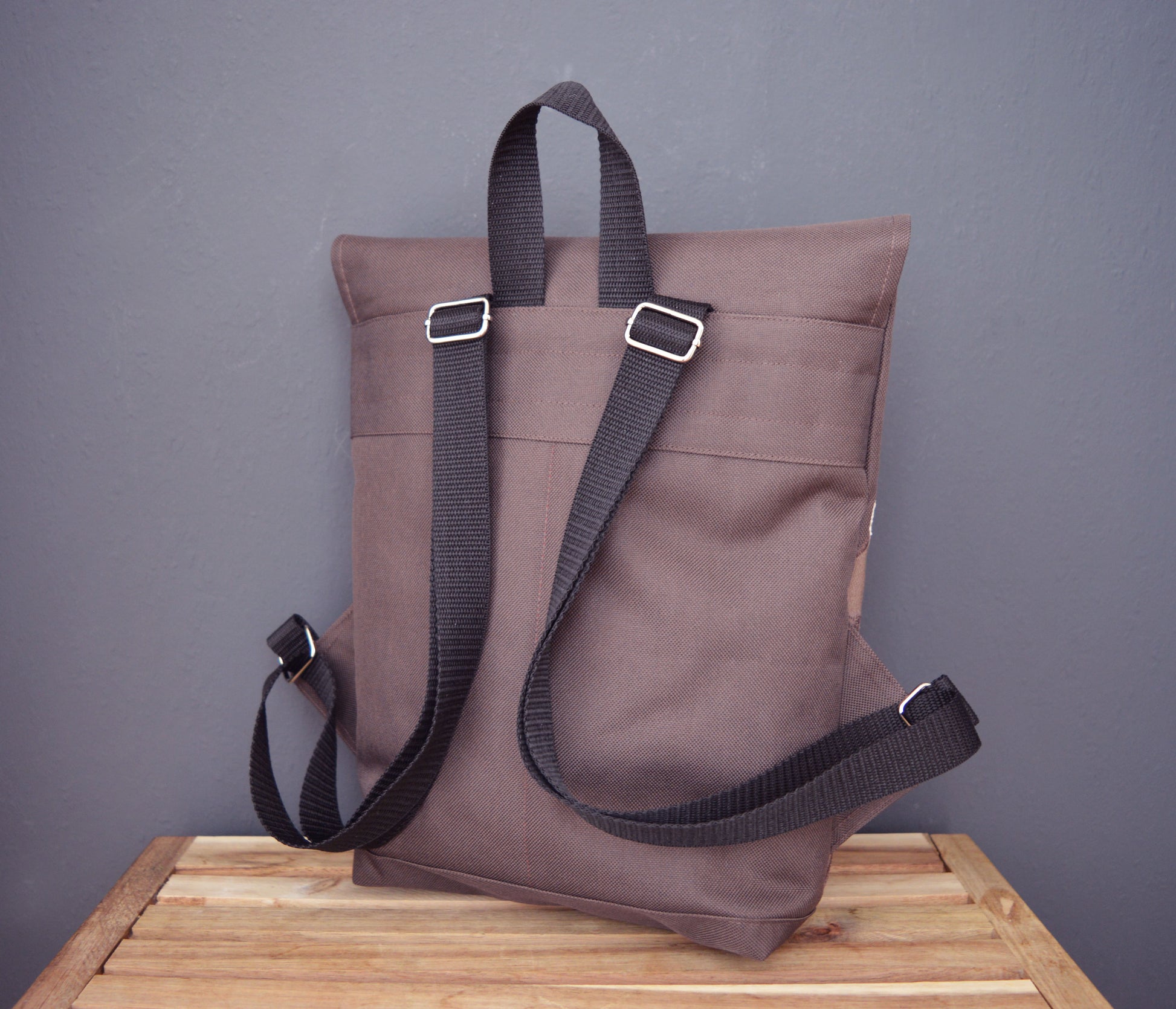 Backpack brown hipster backpack rucksack cycling bag everyday small mini backpack flakes fishscale applique mermaid pine cone OOAK vegan woodland. It's made from dark chocolate brown (cold tone) waterproof cordura and cotton flakes. Pockets on the recycled lining. The bag has two way zipper and snap hook closure. It's a perfect everyday small bag.