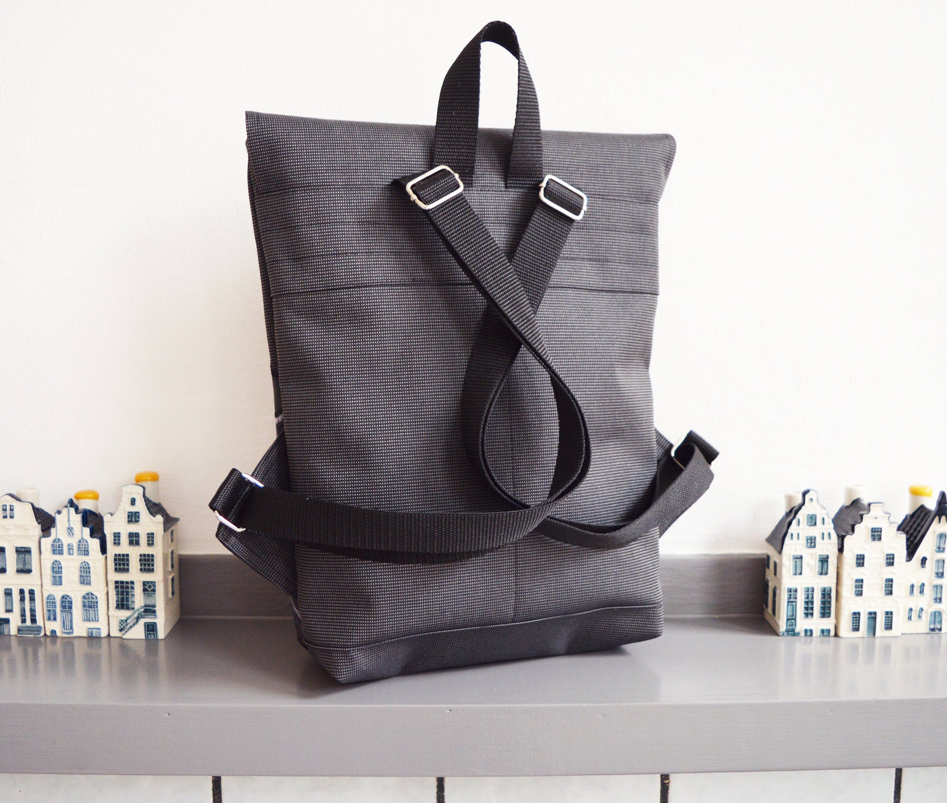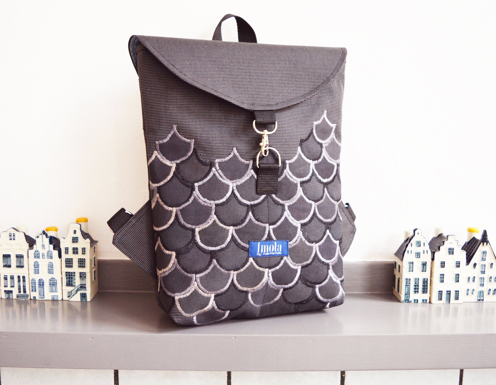Backpack gray hipster backpack rucksack cycling bag everyday small mini backpack flakes fishscale applique mermaid pine cone OOAK