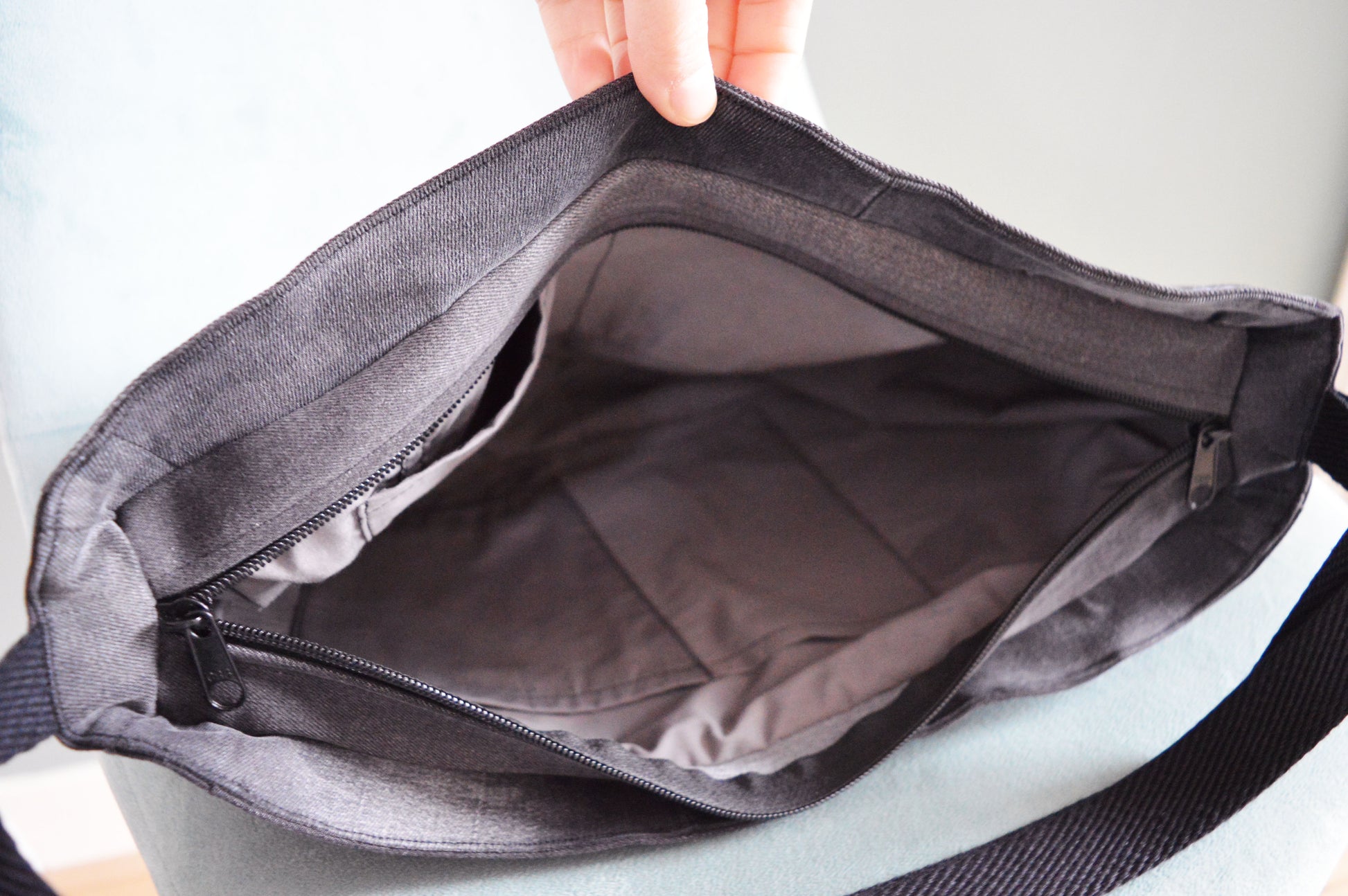 Black crossbody bag messenger bag snake medium vegan bag OOAK tarot the snake vegan fashion mystic magical old school tattoo celestial bag. Made from upcycled (new) denim. Pockets on the upcycled cotton lining. The bag has two-way zipper closure.