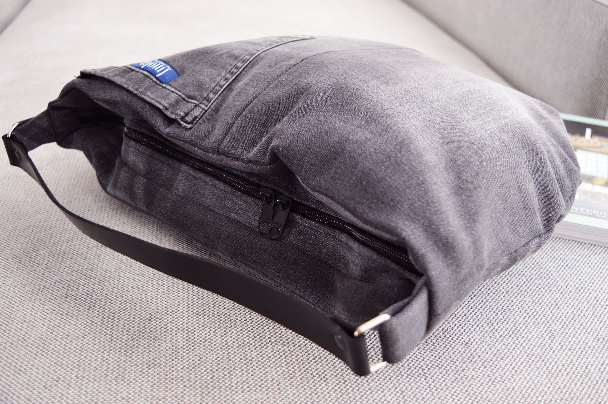 Large denim hobo bag gray hobo tote bag with black genuine leather strap for women shoulder bag handbag everyday bag. It's a very "green", Earth-friendly bag made from upcycled gray denim and black upcycled lining. Pockets inside. The bag has two way zipper closure. Last two picture show you how this type looks in action.