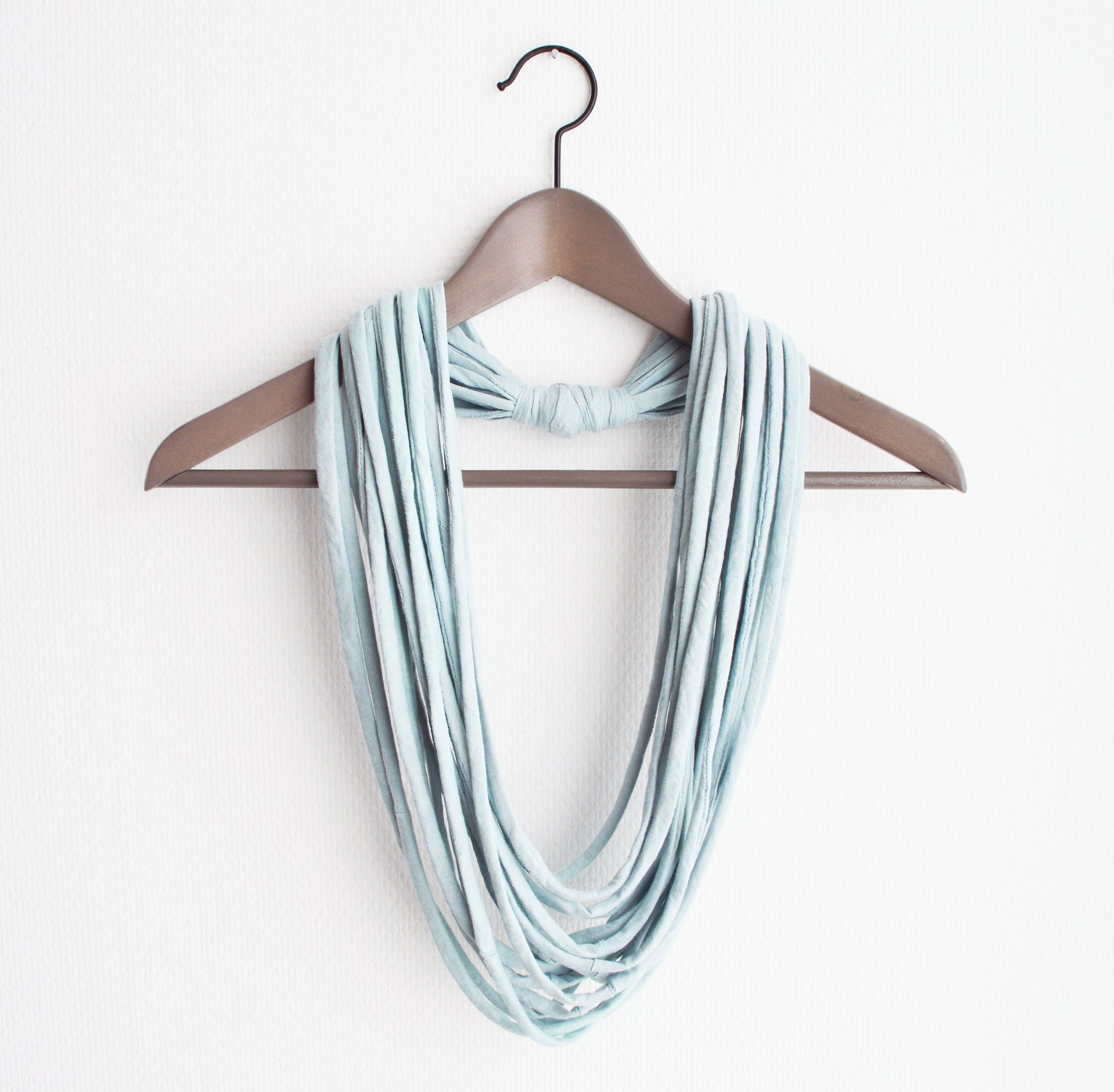 Light blue necklace neck ornament loop scarf infinity scarf round scarf OOAK minimalist scarf. Made from upcycled cotton. It's perfect for moms, because it's soft and the little baby can't tear it. :) It fits for a simple dress or blouse.