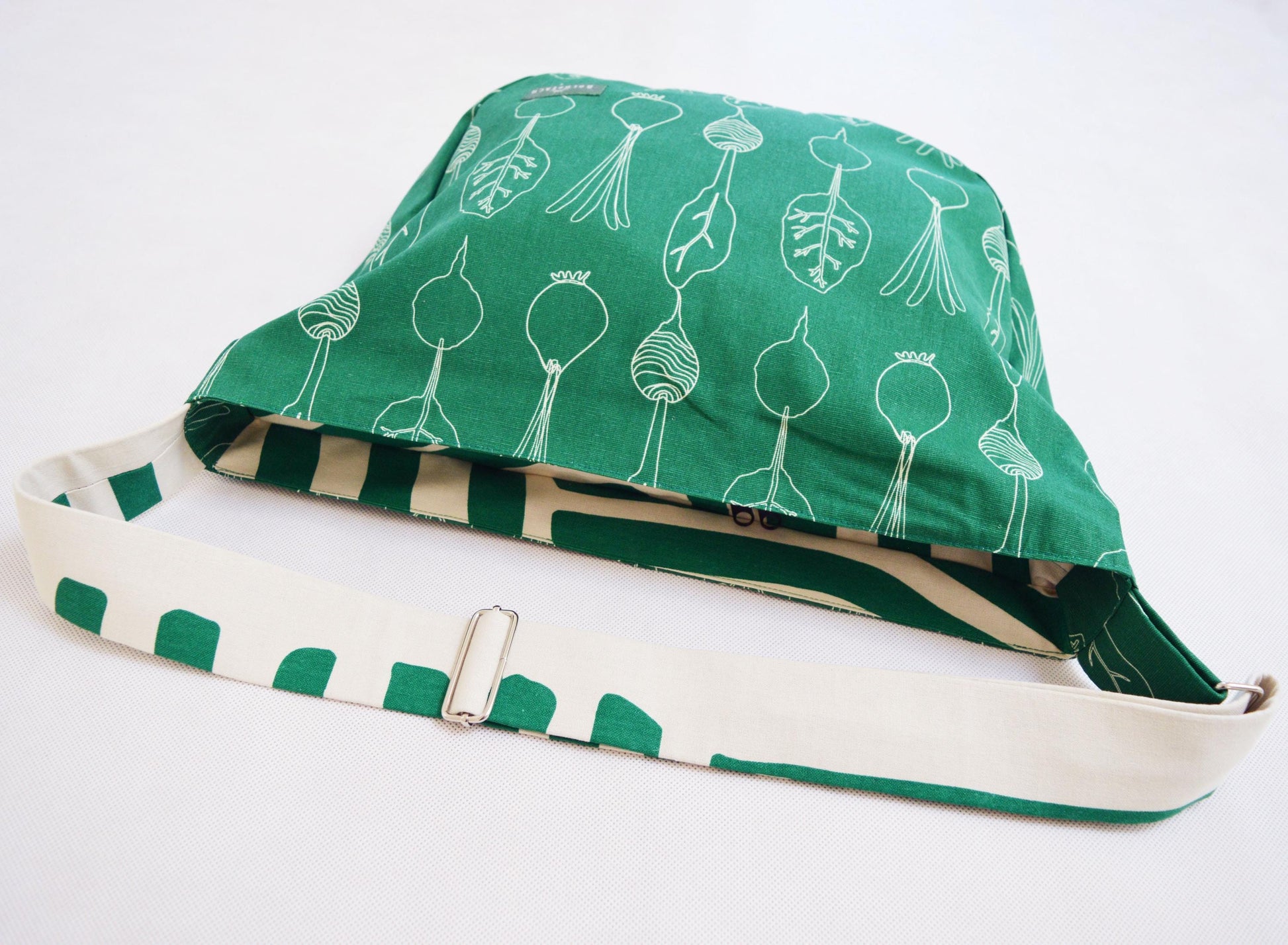 Radish green beige crossbody bag bike messenger bag with carrot print, roller skate bag, diaper bag or shoulder bag.