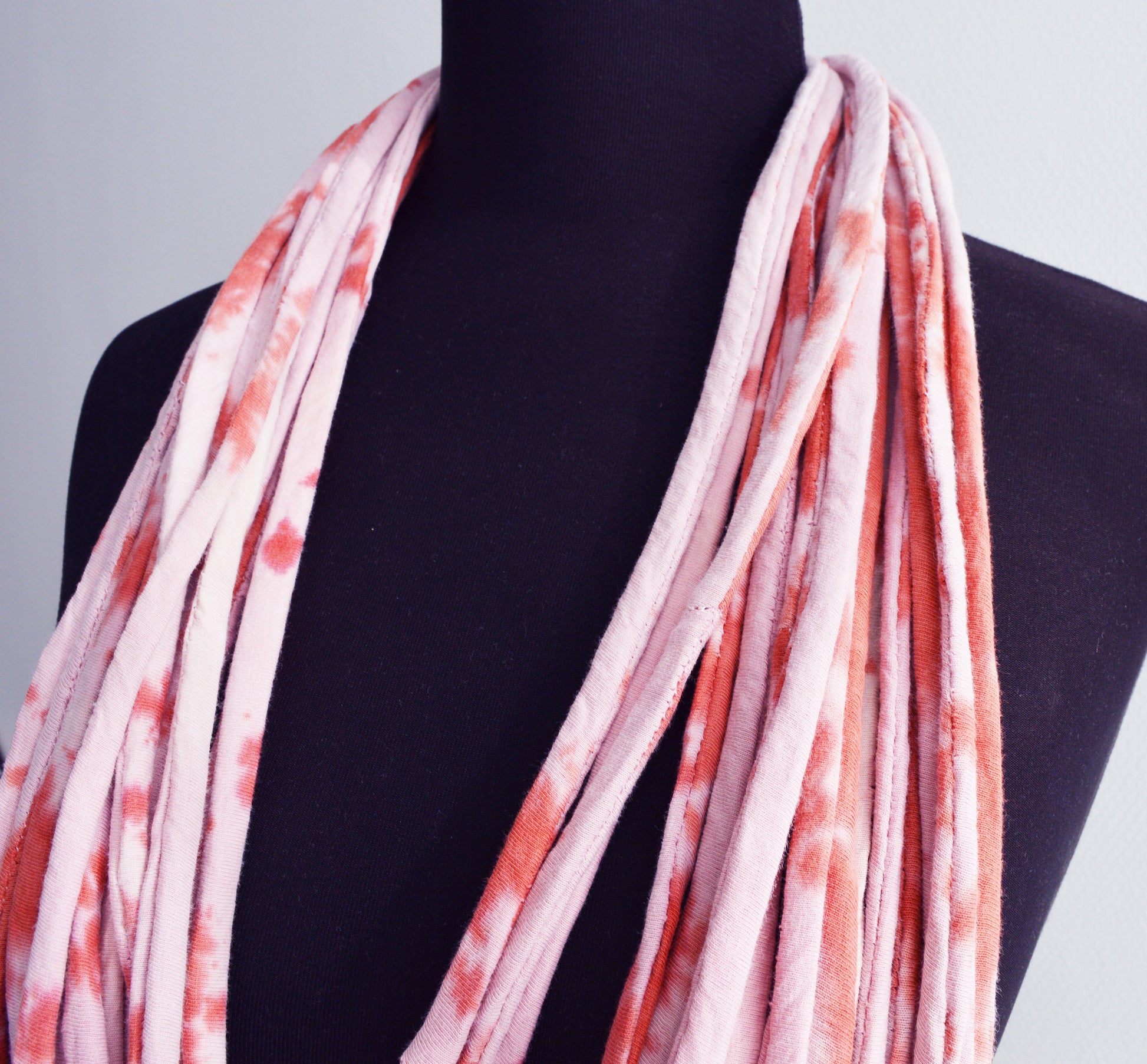 SALE Pink necklace neck ornament loop scarf infinity scarf round scarf OOAK boho hippie happy scarf tie-dyed. Made from upcycled cotton. It's perfect for moms, because it's soft and the little baby can't tear it. :) It fits for a simple dress or blouse.