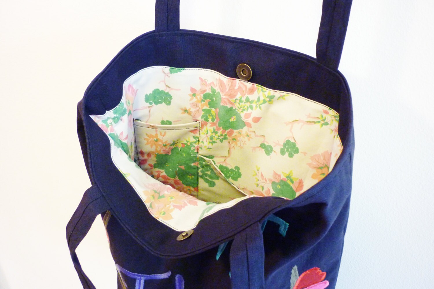 Thanksgiving canvas tote shopper bag dark gray give thanks thankful applique. Applique Give Thanks and a flower wreath in a dark gray base. Zipper closure pocket on the back side, pockets on the upcycled lining. The bag has magnetic closure. Super boheme shabby chic style tote bag, it makes your day happy! :) Give thanks on every day of the year!